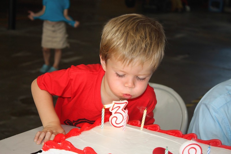 Next, we had cake and ice cream. The cake was big enough for both boys to blow out candles. Carter enjoyed hearing everyone singing Happy Birthday and Landon had an instant meltdown! He was crying up a storm... definitely past naptime.