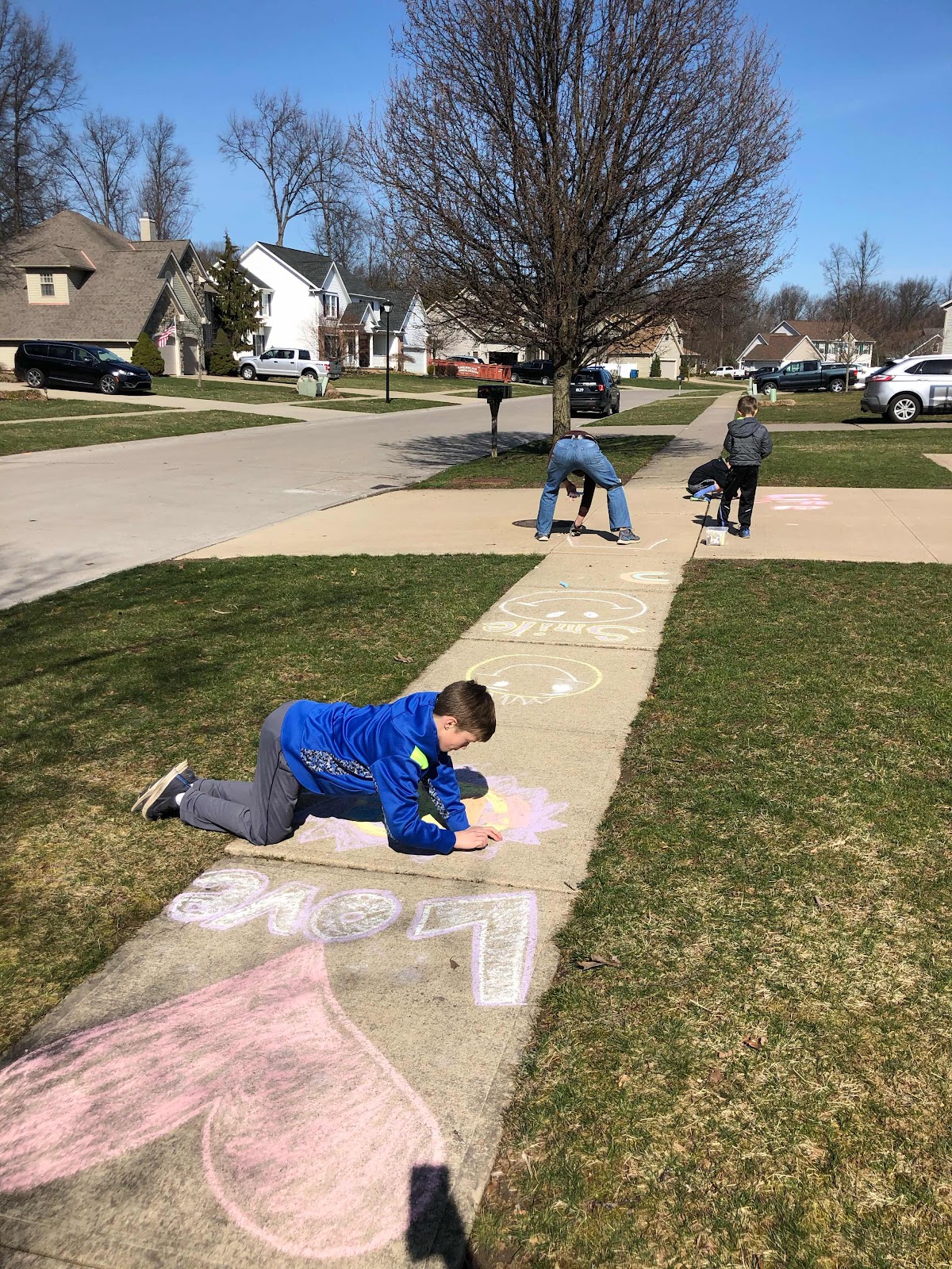 This week our neighborhood decided to do a "chalk the walk". This was a time where we were encouraged to use sidewalk chalk to draw pictures and write positive notes on the sidewalks in our neighborhood.